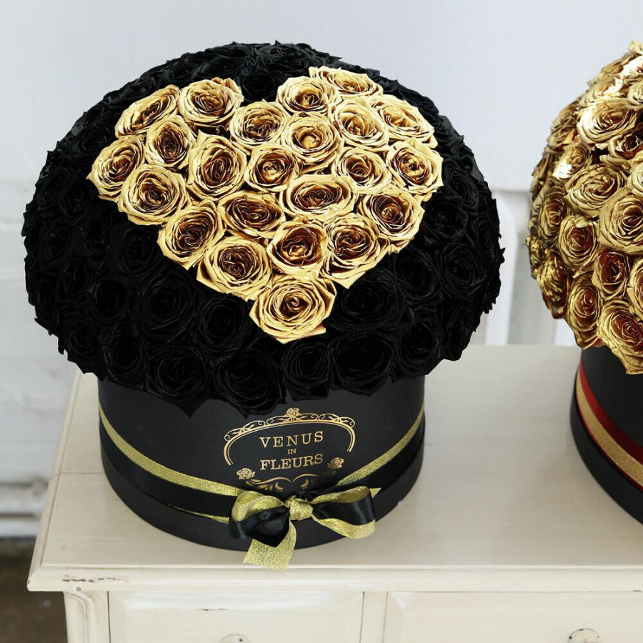 Букет из 201 черной и золотой розы в коробке в Осташково